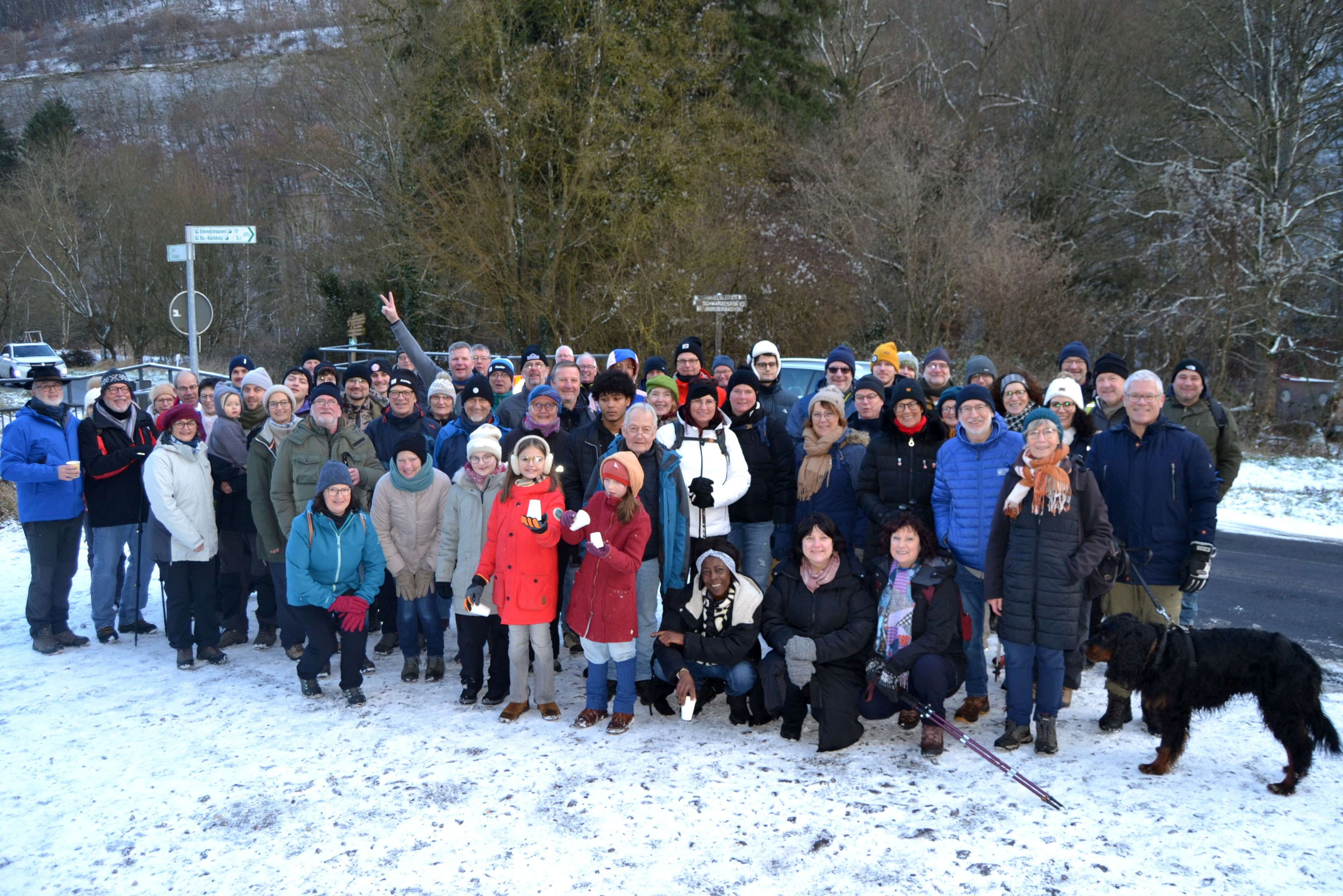 „Leute, zieht euch warm an!“ – unter diesem Motto starteten wir am 03. Januar zu unsere traditionellen Winterwanderung. Unser Abenteuer begann wie immer am Urbarer Backes, wo Vogts Reisemobile mehr als 70 gut gelaunte Wanderwillige einsammelte und bequem zum Bahnhof nach Buchholz chauffierte. Auf verschneiten Pfaden stapften wir entlang des Hunsrückbahn Wanderweges bis zur Liesenfelds Hütte, dem ersten Sammelpunkt mit grandioser Aussicht auf das Hubertus Viadukt. Weiter gings bergab ins wild-romantische Mörderbachtal. Unverzichtbar für Organe und Moral war dann Christophs Halbzeitrast. Wenn der Duft von Glühwein und selbstgebackenem Kuchen in die Nase steigt, vergisst man die Strapazen sofort! Nach dem obligatorischen Gruppenfoto teilte sich die Gruppe zur Bewältigung der zweiten Etappe. Während Trupp 1 sich aufopferungsvoll mit der Beseitigung der noch vorhandenen Glühweinration beschäftigte und anschließend den entspannten Weg über die Kreisstraße durch das Mühltal wählte, machte sich Trupp 2 schon mal auf den Weg die Hangkannte zu erklimmen. Entlang des Kronprinzenpfades und der Traumschleife Elfenlay wurde es dann noch mal richtig spannend. Nur mit Rücksicht und vereinten Kräften konnten diverse ausgesetzte Stellen sowie einige vereiste Passagen ohne weitere Verluste an Mensch und Material gemeistert werden. Während Trupp 1 via Mühltal bereits den Weg ins Ebertor gefunden hatte, war Trupp 2 noch mit dem Abstieg nach Boppard beschäftigt. Endlich im Ebertor angekommen, wurden wir von Trupp 1, dem Ebertor-Gastroteam und alsbald von dampfenden Tellern erwartet. Nach leckerem Gaumenschmaus, einigen Kaltgetränken und der „Neujahrsansprache“ unseres 1. Vorsitzenden Markus gings dann auch schon wieder zurück nach Urbar. Einkehrschwung für die hartgesottenen in Beckmanns Klause obligatorisch.