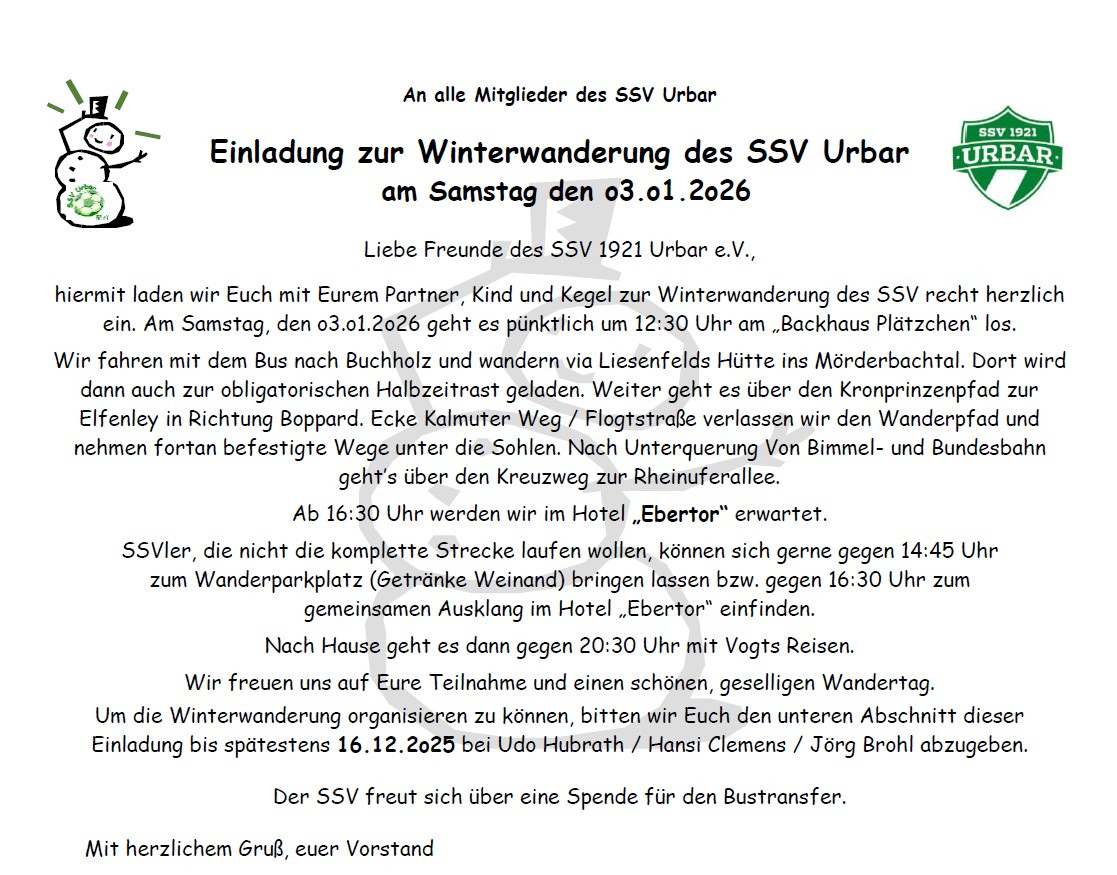 Anmeldung an Jörg Brohl, Udo Hubrath oder Hansi Clemens bis zum 16.12.2025.