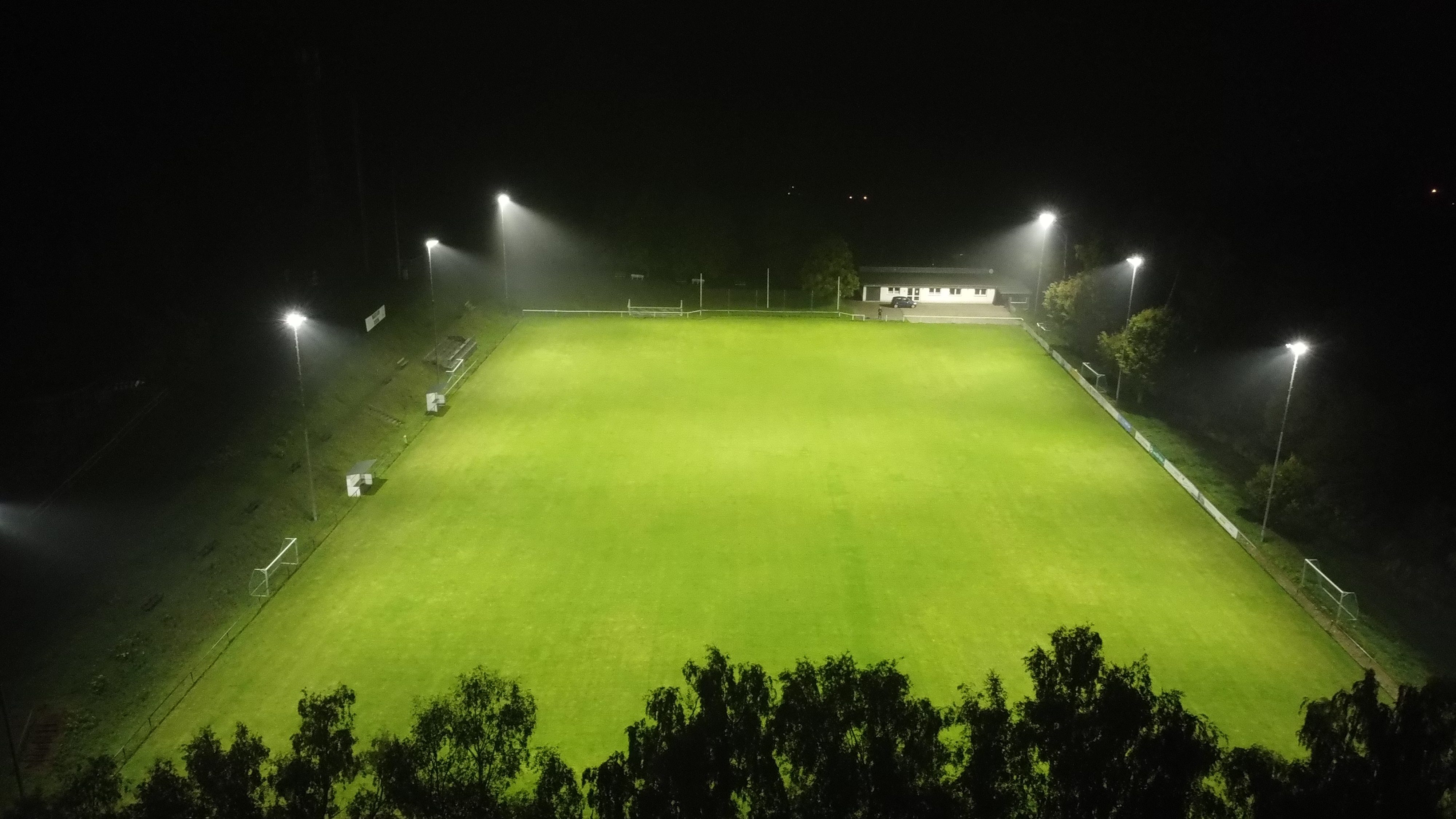 Mit der Umrüstung der Flutlichtanlage auf LED, welche am 02.10.2025 feierlich im Derby gegen Niederburg mit einem Heimsieg eingeweiht wurde, kann der Verein seinen Beitrag zum Klimaschutz leisten.